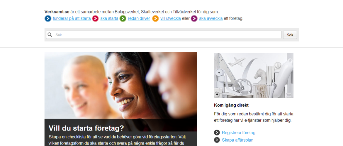 Under 2014 har vi gjort stora förändringar på sajten, både design- och strukturmässigt. Vi har koncentrerat oss på att lotsa våra besökare utifrån vad de vill göra, och lyft fram våra e-tjänster tydligare. Vi vill lösa företagarens problem och göra det här med att starta företag så enkelt som möjligt. Alla våra insatser syftar till att förenkla för företagaren och det tror vi märks!