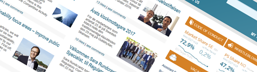 – Vårt intranät är byggt för att ge alla medarbetare en möjlighet att hålla sig informerade om vad som händer i vårt företag och i den omvärld som påverkar vår verksamhet. Samtidigt är det en mötesplats för att dela erfarenheter, sprida goda exempel och att ställa frågor i form av social kommunikation.