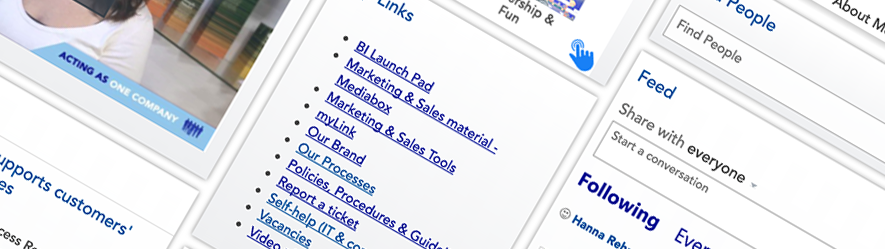 – Idag är det fortfarande att hitta kollegor, att hitta information om företaget och dess produkter, information om hur vi jobbar, om utbildningar och att använda samarbetsytor.