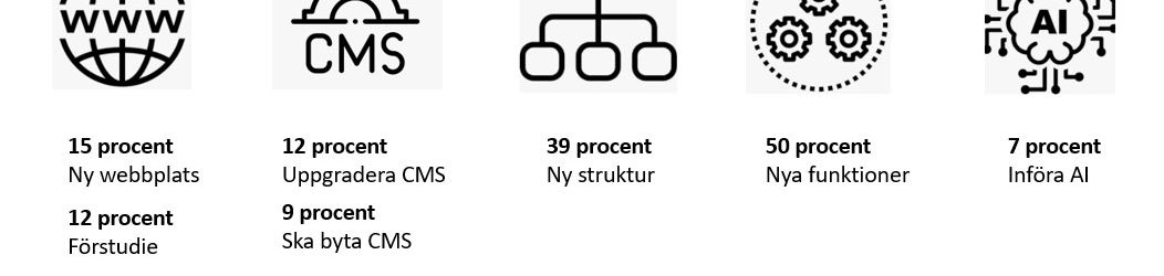 I trendundersökningen Hur mår Sveriges webbplatser 2022?  uppger 89 procent av webbplatsansvariga att de planerar att göra större förändringar. Hälften uppger att de ska utveckla nya funktioner och 39 procent att de ska göra om strukturen. Men det är även många, 15 procent, om ska göra en ny webbplats och 12 procent uppger att de planerar att genomföra en förstudie.