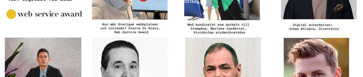 Utdelning av Web Service Award 2022 till bästa webbplatser kommersiella och samhällskommunikation samt bästa intranät. Hedersutmärkelser delas även ut till bästa förbättrare inom varje kategori