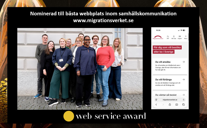 Vi gratulerar Migrationsverket till nomineringen för bästa webbplats i kategorin Samhällskommunikation.