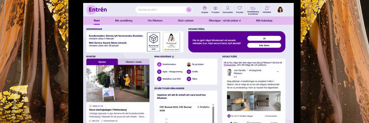 Under 2025 har Rikshem arbetat om startsidan på intranätet för att få mer fokus på de gemensamma målen och för att möjliggöra för användarna att själva anpassa sina länkar på startsidan.
