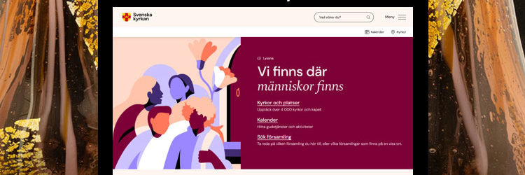 Med en av Sveriges bredaste målgrupper och ett tydligt samhällsuppdrag ställs höga krav på Svenska kyrkans webb. Kalendern är navet, tillgänglighet en självklarhet och användarinsikter styr utvecklingen.