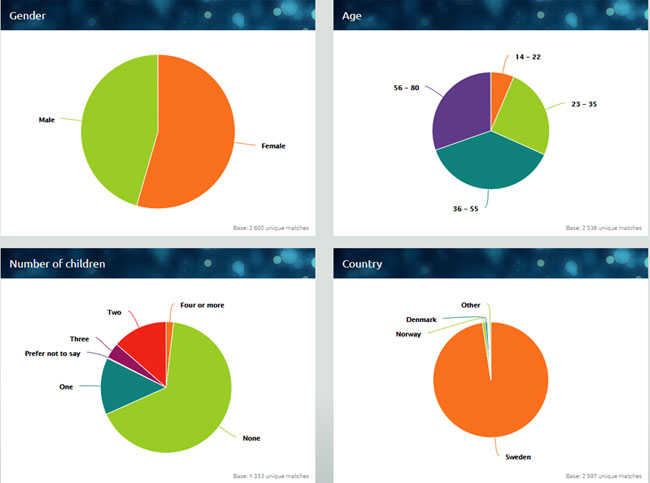 Genom WSA Connect light så har du tillgång till över 670 000 svenskar som gett sitt medgivande till att bli kontaktade för marknadsundersökningar och som frivilligt delar sina data om sig själva. En helt GDPR-säkrad metod att få in detaljerad data om dina besökare! I en WSA Connect Light så får du en visuell överblick om dina besökare.