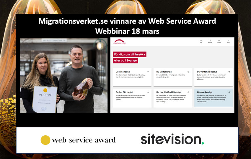 Under eventet Möt vinnarna av Web Service Award den 18 mars 2026 kommer Staffan Brundin, webbstrateg och Sara Lagré, webbredaktör på Migrationsverket, berätta om arbetet bakom deras mycket uppskattade nya webbplats.